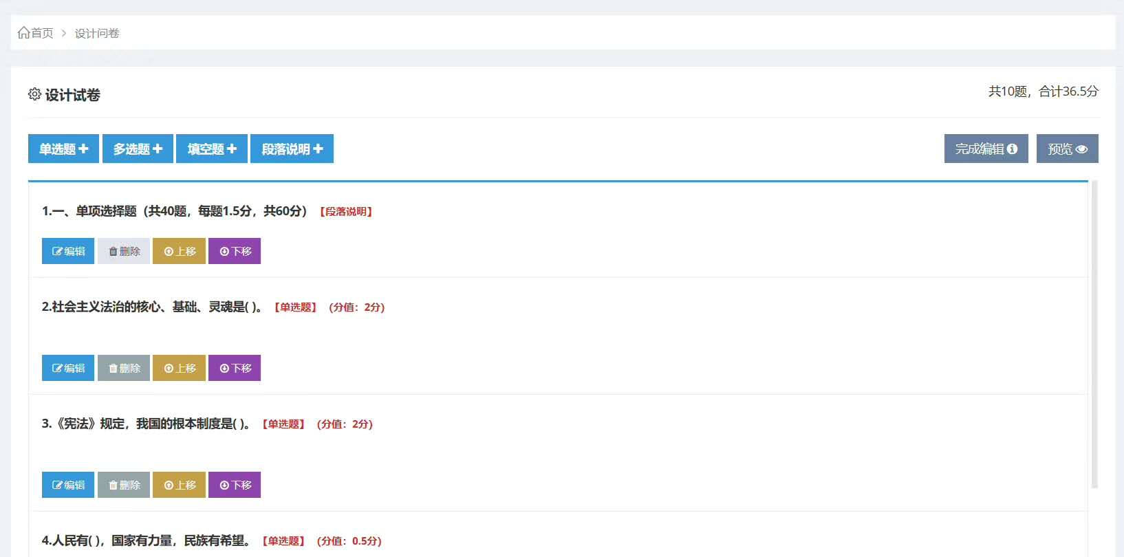 簡易性:支持批量導入各種類型文件題庫,支持固定試卷、抽題試卷和隨機試卷,自動生成統(tǒng)計報表。